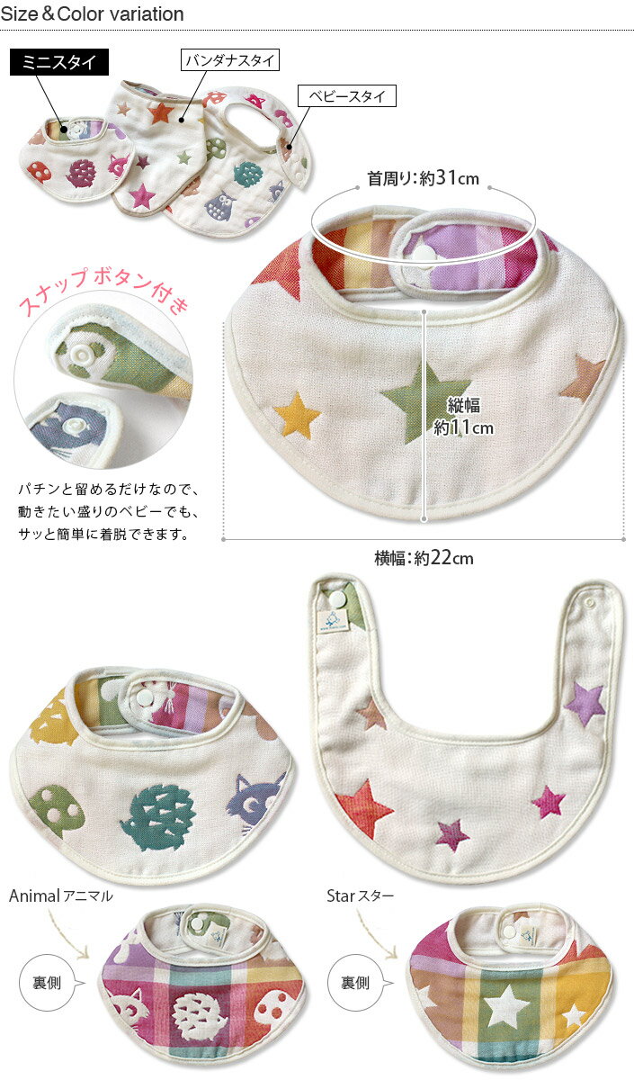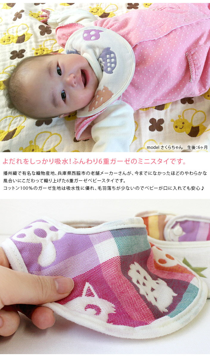 日本製 6重ガーゼ ミニスタイ / よだれかけ まえかけ 前掛け ビブ スタイ 出産祝い 内祝い 出産 コットン ガーゼ 国産 ベビー 男の子 女の子 マタニティ ギフト