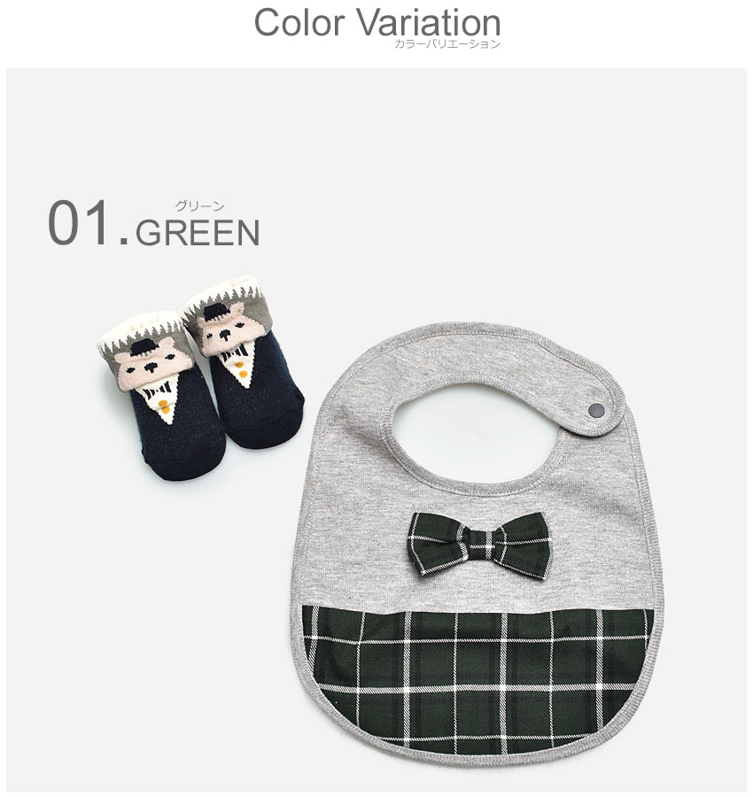 Leapepe レアペペ エプロン+ブルマ&ヘアアクセサリー&ベビーレッグセット 男の子用(スタイ おしゃれ セット ベビー服 出産祝い ブランド 男 人気 日本製)