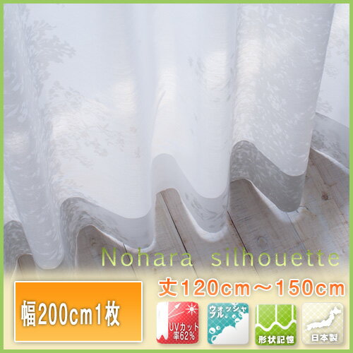 \ポイント5倍★6/13〜15限定★/ 【送料無料】【国産】144サイズから選べるオーダーレースカーテン!ノハラシルエット・幅200cm・1枚◆丈120cm〜150cm UVカット率62% ウォッシャブル 形状記憶 模様替え