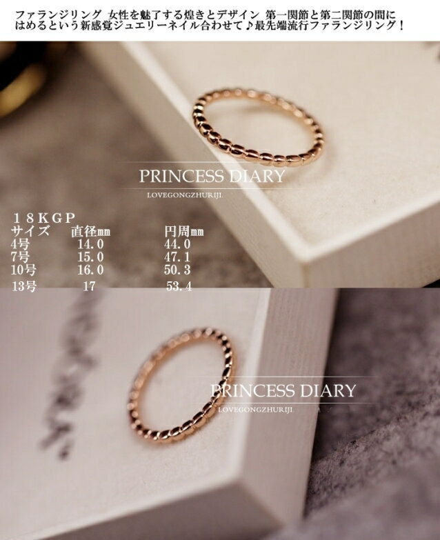 指先を美しくみせるシンプルなファランジリング18KGPネイルリング,ピンキーリング *コメント: 今話題の「ファランジリング」phalange ring 女性を魅了する煌きとデザイン指先や指の第一関節、第二関節の間に付ける お洒落なファランジリング♪